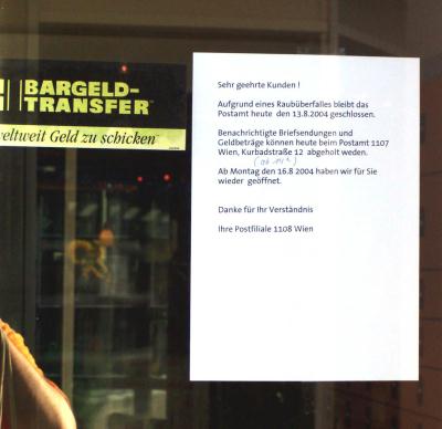 Nachzutragen ist auch noch der zweite Überfall binnen eines Jahres auf die Wiener Postfiliale (1108) am 12. oder 13.8.